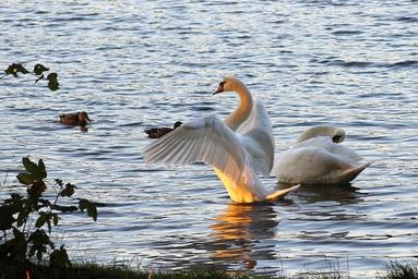 Keywords: swan wing sunset water bird water nature lake white elegant