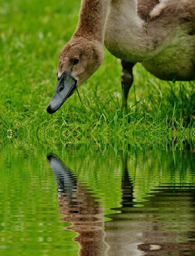 Keywords: swan young animal water mirroring waters water bird feather plumage swans