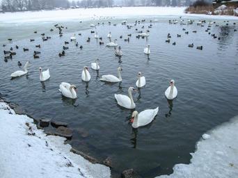Keywords: swans ducks pond lake winter waldviertel lower austria austria