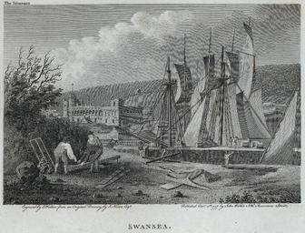 | Keywords: Swansea (1131003).jpg Abstract A view of shipwrights working on the quayside with a large sailing ship on the periphery A castle can also be seen in the background Size mm 184 165 exhibition history Institution National Library of Wales Technique print engraving/etching bw object history object type CC-zero place of creation place of discovery 1131003 Swansea 1131003 Uploaded with GWToolset Swansea 1131003 http //dams llgc org uk/iiif/test/2 0/image/1131003/full/1000 /0/default jpg Welsh Landscape Collection Images uploaded as part of NLW - WMUK collaboration Swansea in art Ships in art of the United Kingdom 1797 engravings |