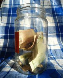 Keywords: Swear jar.jpg en A swear jar 2014-06-08 18 05 14 own Anna Frodesiak cc-zero Profanity Glass jars Files by User Anna Frodesiak Banknotes of the People's Republic of China Coins of China Swear jars