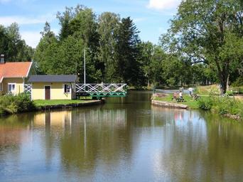Keywords: sweden göta channel water tree house sluice summer sky blue