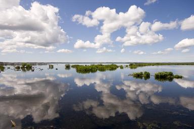 Keywords: sweden lake hornbörgasjön clouds sky reflection mirroring water bank landscape scandinavia plant idyll nature leaves blue