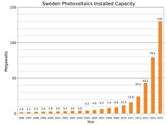 | Keywords: Sweden Photovoltaics Installed Capacity.svg translate yes en Installed photovoltaics in Sweden from 1996 to 2015 Sources 2014 http //www iea-pvps org/fileadmin/dam/public/report/technical/PVPS_report_-_A_Snapshot_of_Global_PV_-_1992-2014 pdfhttp //www iea-pvps org/fileadmin/dam/public/report/PICS/IEA-PVPS_-__A_Snapshot_of_Global_PV_-_1992-2015_-_Final_2_02 pdf 2014-12-10 own Delphi234 other versions cc-zero Solar energy in Sweden Photovoltaic power statistics | ||||