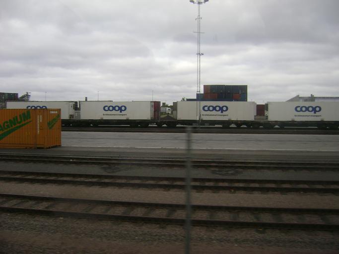 Keywords: Sweden. Skåne County. Helsingborg 001.JPG en Sweden Skåne County Helsingborg own Albertyanks - Albert Jankowski 2010-06-26 Transport in Helsingborg Coop Norden Freight trains in Sweden Rail tracks in Sweden
