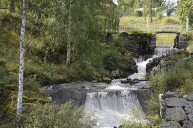 Keywords: sweden waterfall green trees water nature forest landscape water flow bridge sheet tree natural water