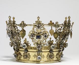 | Keywords: Swedish - Swedish Wedding Crown - Walters 572047 - View A.jpg Although crowns are customarily associated with royalty wedding crowns in Scandinavia were worn by brides of all social strata They were owned by the bride's parish and loaned for the occasaion Wedding crowns were richly decorated with emblems of conjugal love this example includes carnations associated with enduring marriage because their fragrance outlasts their blossoms dangling linden leaves which represent fertility in Nordic literature and angels Christian figures that allude to the eternal and spiritual qualities of marriage The crown itself resembles that worn by Mary Queen of Heaven early Other date century 18 silver gilt with paste jewels cm 14 9 accession number 57 2047 17336 Ruth Blumka New York November 1978 mode of acquisition unknown Walters Art Museum 1978 by purchase Museum purchase 1978 Jewelry - Ancient to Modern The Walters Art Gallery Baltimore 1979-1980 Objects of Adornment Five Thousand Years of Jewelry from the Walters Art Gallery Baltimore Cooper-Hewitt National Design Museum New York; Chrysler Museum of Art Norfolk; Carnegie Museum of Art Pittsburgh; San Antonio Museum of Art San Antonio; Philbrook Museum of Art Tulsa; Honolulu Academy of Arts Honolulu; New Orleans Museum of Art New Orleans; Milwaukee Art Museum Milwaukee; Minneapolis Institute of Arts Minneapolis; Toledo Museum of Art Toledo; The John and Mable Ringling Museum of Art Sarasota 1984-1987 Jewelry from the Walters Art Museum and the Zucker Family Collection The Walters Art Gallery Baltimore 1987 Bedazzled 5 000 Years of Jewelry from the Walters Art Museum Frist Center for the Visual Arts Nashville; The John and Mable Ringling Museum of Art Sarasota; The Walters Art Museum Baltimore 2006-2009 Bedazzled 5 000 Years of Jewelry El Paso Museum of Art El Paso 2010 place of origin Sweden Walters Art Museum license Jewellery in the Walters Art Museum Art of Sweden Media contributed by the Walters Art Museum needs category review Bridal crowns |