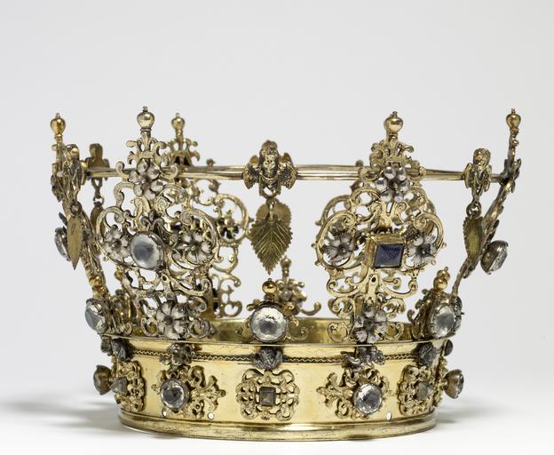 | Keywords: Swedish - Swedish Wedding Crown - Walters 572047 - View B.jpg Although crowns are customarily associated with royalty wedding crowns in Scandinavia were worn by brides of all social strata They were owned by the bride's parish and loaned for the occasaion Wedding crowns were richly decorated with emblems of conjugal love this example includes carnations associated with enduring marriage because their fragrance outlasts their blossoms dangling linden leaves which represent fertility in Nordic literature and angels Christian figures that allude to the eternal and spiritual qualities of marriage The crown itself resembles that worn by Mary Queen of Heaven early Other date century 18 silver gilt with paste jewels cm 14 9 accession number 57 2047 17336 Ruth Blumka New York November 1978 mode of acquisition unknown Walters Art Museum 1978 by purchase Museum purchase 1978 Jewelry - Ancient to Modern The Walters Art Gallery Baltimore 1979-1980 Objects of Adornment Five Thousand Years of Jewelry from the Walters Art Gallery Baltimore Cooper-Hewitt National Design Museum New York; Chrysler Museum of Art Norfolk; Carnegie Museum of Art Pittsburgh; San Antonio Museum of Art San Antonio; Philbrook Museum of Art Tulsa; Honolulu Academy of Arts Honolulu; New Orleans Museum of Art New Orleans; Milwaukee Art Museum Milwaukee; Minneapolis Institute of Arts Minneapolis; Toledo Museum of Art Toledo; The John and Mable Ringling Museum of Art Sarasota 1984-1987 Jewelry from the Walters Art Museum and the Zucker Family Collection The Walters Art Gallery Baltimore 1987 Bedazzled 5 000 Years of Jewelry from the Walters Art Museum Frist Center for the Visual Arts Nashville; The John and Mable Ringling Museum of Art Sarasota; The Walters Art Museum Baltimore 2006-2009 Bedazzled 5 000 Years of Jewelry El Paso Museum of Art El Paso 2010 place of origin Sweden Walters Art Museum license Jewellery in the Walters Art Museum Art of Sweden Media contributed by the Walters Art Museum needs category review Bridal crowns |