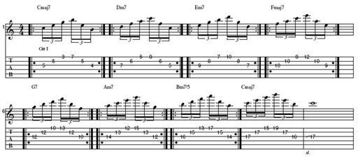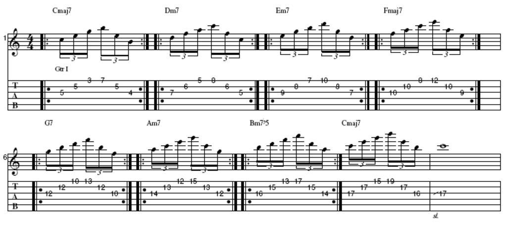 Keywords: Sweeping 3-String thru Cmaj.png Eigenanfertigung 2006-02-24 own assumed Red Rooster Guitar-Licks
