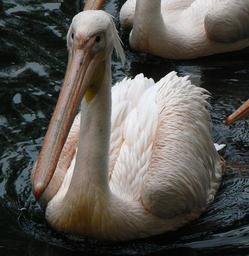 Keywords: Swiming front Pelecanus onocrotalus.JPG Pelecanus onocrotalus in the zoo of hamburg germany Own 2007-08 LadyofHats LadyofHats Pelecanus onocrotalus captive swimming Birds at Tierpark Hagenbeck