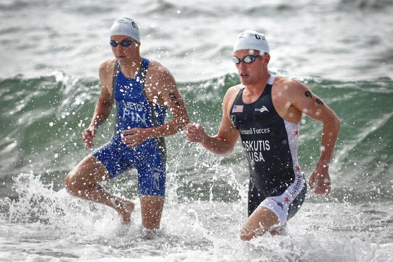 Keywords: swimming competition triathalon beach athletes surf fitness men healthy jogging active water running sport endurance health male