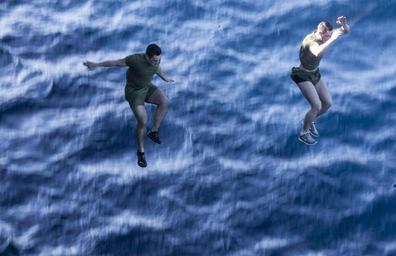Keywords: swimming ocean jumping sea water blue ship military sailors happy marine relaxation recreation fun men