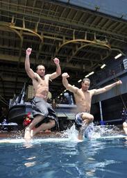 Keywords: swimming ocean jumping sea water blue ship military sailors happy marine relaxation recreation fun men