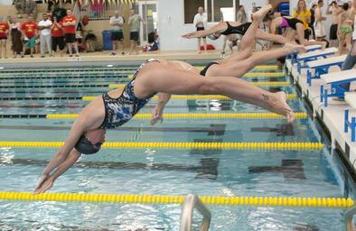 Keywords: swimming race competition start diving lanes swimmers dive splash water action athletes pool blocks