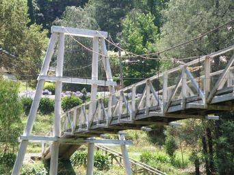 | Keywords: Swing Bridge Suspension Bridge 2009 Wooden 2.JPG en Another photo taken by me of a old suspension bridge in the Shire of Yarra Ranges Australia This small bridge is named Swing Bridge despite not actually being a bridge of that type own Matthew Paul Argall 2009 Swing Bridge Suspension Bridge |