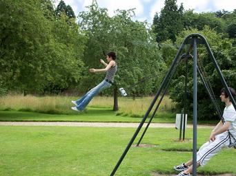 Keywords: swing swinging girl jumping teenager playground happy park fun outdoors person