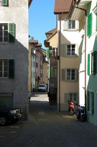 Keywords: switzerland bremgarten old town summer alley eng tourism city breaks facades shadow portrait