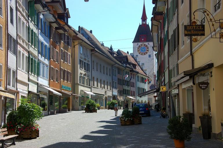 Keywords: switzerland bremgarten old town summer tourism city breaks facades shadow light and shadow