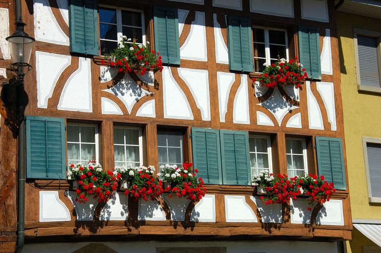 Keywords: switzerland bremgarten old town summer tourism city breaks facades truss