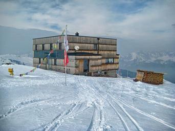 Keywords: switzerland landscape scenic winter snow slope ski resort building sky clouds nature outside