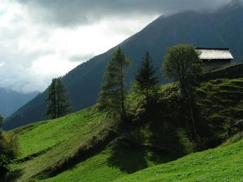 Keywords: switzerland mountain meadow alpine alm mountain hut clouds