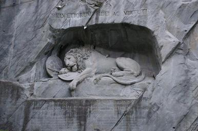 Keywords: switzerland wounded lion stone carving