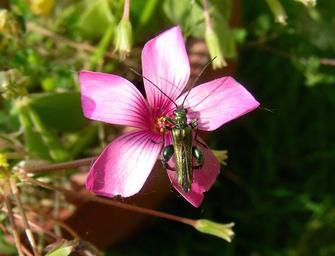 Keywords: beetle flora flower beetle flowerbeetle insects Oedemera nobilis, on Oxalis Oedemera nobilis, on Oxalis