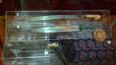 Keywords: Sword, daggers, ashtray and tablecloth pertaining to Karabakh khanate 2.jpg en Sword daggers ashtray and tablecloth tirme belonged to Karabakh khan Museum of History of Azerbaijan Baku own work Interfase 2013-05-17 40 22 8 0547 N 49 50 24 4969 E alt 0_source exif_heading Yatagans Kindjal Metal ashtrays Tablecloths Khanate of Karabakh Department of the Khanate Period Museum of History of Azerbaijan Asian Azeri Abjab script