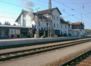 | Keywords: Swu - 2000.06.21 - 01 - AG.jpg Aufnahmegebäude des Bahnhofes Schwarzenau mit Wasserturm und Dampflok 17c 415 Brenner Brenner nach einem Kesseltausch in Ceske Velenice Denkmalgeschütztes Objekt Österreich 76501 own 2000-06-21 Grubernst <span class signature-talk >talk</span> Cc-zero Bahnhof Schwarzenau |