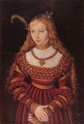 | Keywords: people indoor costume This portrait of Princess Sybille of Cleves (1512-1554) was painted when she was fourteen years old and newly betrothed to Johann Friedrich I (1503-1554), the future Elector of Saxony. The oldest daughter of Johann III, Duke of Cleves, and Maria of Jülich-Berg, Sybille grew up at court in Düsseldorf with her sister Anne, one of the future wives of Henry VIII. Her marriage into the House of Saxony placed Sybille in the middle of the greatest ideological struggle of the sixteenth century, a reformation not only of the church but also of the state. A committed friend and supporter of Martin Luther, Johann Friedrich was actively engaged in the Reformation and took dramatic political and military risks to protect the reformatory movement. Sybille conducted a correspondence of her own with Martin Luther and actively supported her husband's many campaigns, defending Wittenberg in his absence during Emperor Charles V's siege of the city in 1546. This portrait of Sybille was painted sometime after her betrothal to Johann Friedrich in September 1526 and before their marriage on 3 June 1527. Emperor Charles V and Johann Friedrich's uncle, the Elector Friedrich III (called the Wise), had arranged a marriage between the future Elector and the Emperor's youngest sister Katharina in 1521. With no wedding having materialized by February 1524 and the marriage of Katharina to her cousin, King John III of Portugal, taking place in February 1525, the Elector began searching for another bride for his nephew. Johann Friedrich's betrothal to Sybille of Cleves took place at Burg on the Wupper on 8 September 1526 and the wedding ceremony followed on 3 June 1527 at Torgau. Lucas Cranach provided the lavish decorations. The jeweled and feathered wreath, the object most associated with the bride in sixteenth-century Germany, is the most obvious indication that this portrait was painted after Sybille's betrothal in September 1526. The wreath was linked symbolically to the bride's virginity, and she presented it to the groom at the engagement and wedding ceremonies as both a testament to and an offering of her virtue. The procession to the church was an important part of the wedding ceremony on all societal levels and at this time the bride would wear her hair loose or uncovered apart from the wreath, as Sybille appears here. In her procession into Saxony, Sybille was accompanied by two hundred horses ridden by the nobility of Jülich and Cleves. Apart from the wreath, symbols of her betrothal to Johann Friedrich are literally woven into the fabric of Sybille's dress. The House of Saxony is symbolized by the pattern in the gold fabric of her sleeves and around her waist and the three large interconnected chains around her chest. The pendant hanging from her neck announces the joining of the two families and suggests that this portrait was commissioned by her father. The letters on the pendant, 'i/j b c s', indicate both her lineage and the family she is soon to join - her father's full title was Duke of Iülich/Jülich, Berg and Cleves, and the dynasty she is joining is that of Saxony. A second betrothal portrait of Sybille of Cleves by Cranach appears together with a pendant of Johann Friedrich in Weimar (fig. 1; Schlossmuseum, oil on panel, 55 x 36 cm.). Both panels, signed with the artist's mark and dated 1526, are taller and slightly narrower than the present portrait. Sybille wears the same dress with the Saxon pattern woven into the gold fabric and the three large chains around her chest. Her hair is similarly worn down and the wedding wreath likewise sits at an angle on her head. Subtle changes in her pose and appearance, however, suggest a slightly different moment and, perhaps, the passage of time. The Weimar painting shows Sybille in a similar three-quarter-length pose against a dark background and her hands, rather than clasping one another at her waist, are held one over the other in a slightly lower position. Her hair has been pulled behind her shoulders and her face has taken on a more mature aspect. Her features and bone structure are more defined and her gaze appears to be more purposeful as she looks in the direction of her husband. Two changes in Sybille's dress are significant: her dress is red, the color of the dynasty of Cleves, and the pendant bearing her father's initials has been replaced with a jeweled cross. While Friedländer dated the present painting to 1525 largely due to the sitter's more youthful appearance, the details of Sybille's dress confirm that both this portrait and the Weimar pendant were painted during her nine-month betrothal to Johann Friedrich. Every aspect of these portraits, from the fabrics and jewels to her hair and her pose, had some significance to the contemporary viewer and while not all of the iconography is decipherable today, the differences between the Weimar painting and the present portrait may explain something about the circumstances in which they were created. As a pendant, the Weimar portrait served as a visual record of the formal joining of the houses of Saxony and Cleves. As with the divisions of a coat of arms, she represented her family by wearing the colors of her dynasty but the replacement of the more personal pendant bearing her father's initials may be an acknowledgment of the necessary shift of her loyalties from her own family to that of her husband. No pendant to our portrait is known and the green fabric of Sybille's dress has no connection with either house. It could have been a color that she particularly liked or carried some general association, as in previous centuries, with hope. There is no question that the pendant in this painting emphasizes her own lineage and it is possible that this portrait was made for Sybille's family in Cleves while the one in Weimar was an official portrait documenting the match. Cranach's linear style and his abstract sense of volume indicated by the concentric bands arou