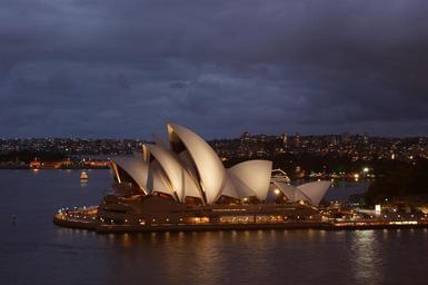 Keywords: sydney opera house night harbor city landmark water architecture skyline evening landscape sunset lights australia icon