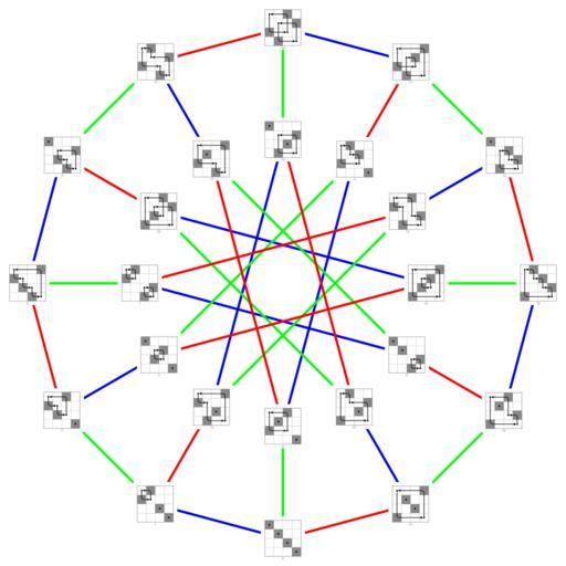 | Keywords: Symmetric group 4; Cayley graph 1,5,21 (Nauru Petersen); matrices.svg Cayley graph of S<sub>4</sub> generated by blue 12 green 13 red 14 This is a Nauru graph compare http //11011110 livejournal com/124705 html The many faces of the Nauru graph by 0xDE own v fl mate2code 300px300px Nauru graph 4x4 permutation matrix |