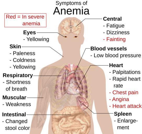 | Keywords: Symptoms of anemia.svg en Main symptoms that may appear in anemia See also Wikipedia Anemia Signs and symptoms To discuss image please see Template talk Human body diagrams All used images are in public domain References http //www emedicinehealth com/anemia/page3_em htm eMedicineHealth > anemia article Author Saimak T Nabili MD MPH Editor Melissa Conrad Stöppler MD Last Editorial Review 12/9/2008 Retrieved on 4 April 2009 Mikael Häggström 2009-04-13 thumb left png-format Human body diagrams SVG diagrams of the adult male human body by Mikael Häggström Anemias |