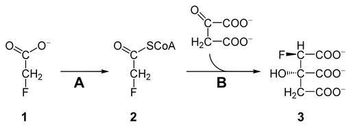 Keywords: Synthesis of fluorocitrate.svg en synthesis of fluorocitrate 1 form fluoroacetate de Bildung von Fluorcitrat 3 aus Fluoracetat 1 own Yikrazuul 2010-01-23 Citric acid cycle Sodium fluoroacetate