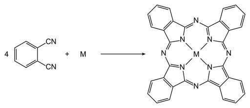 | Keywords: Synthesis Metallo Phthalocyanine.svg Synthese eines Metallo-Phthalocyanins aus Phthalonitril Synthesis of a metallo phthalocyanine with phthalonitrile Own 2010-02-16 Sponk <span class signature-talk >talk</span> PD-chem Organometallic syntheses Chemical reactions Organometallic reactions |