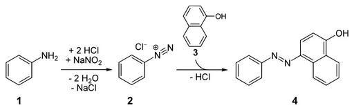 | Keywords: Synthesis of Organol Brown N.svg en synthesis of Organol Brown N 4 from aniline 1 and 1-naphthol 3 azo coupling de synthesis of Organol Brown N 4 aus Anilin 1 und 1-Naphthol 3 Azokupplung own Yikrazuul 2010-01-16 Azo compounds Benzenediazonium chloride Diazo coupling reactions |