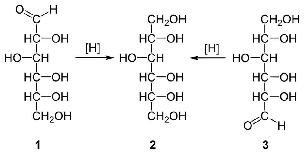 Keywords: Synthesis of sorbitol.svg en synthesis of D-sorbitol 2 reducing D-glucose 1 or L-gulose 3 de Synthese von D-Sorbitol 2 durch das Reduzieren von D-Glucose 1 oder L-Gulose 3 own Yikrazuul 2009-10-26 Sorbitol Glucose Gulose Fischer projection