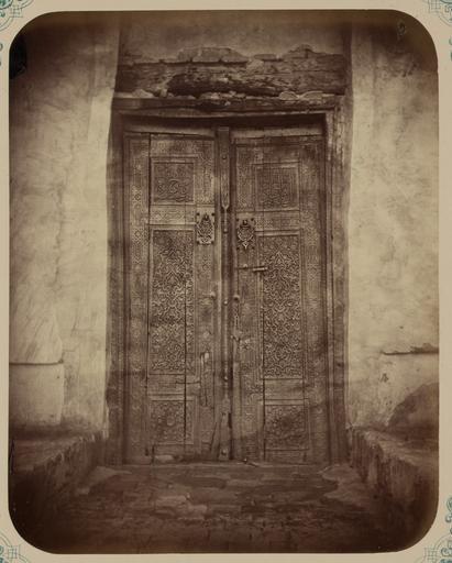 | Keywords: Syr-Darya Oblast. City of Turkestan. External Door Leading to the Mausoleum of Saint Sultan Akhmed Iassavi WDL3599.png Artwork ru Богаевский иколай Владими ович 1843 1912 гг fr Bogaevskii Nikolaï V 1843-1912 en Bogaevskii Nikolai V 1843-1912 zh 亚历山大·L· ,1840-1888 年 pt Bogaevskii Nikolai V 1843-1912 ar بوغافسكي، نيكولاي ف ، 1843-1912 es Bogaevskii Nikolai V 1843-1912 ru Сы да ьинская область Го од Ту кестан а ужная две ь ведущая в мавзолей святого султана Ахмеда Ясави fr Oblast de Syr-Darya Ville de Turkestan Porte extérieure menant vers le mausolée du vénérable sultan Akhmed Iassavi en Syr-Darya Oblast City of Turkestan External Door Leading to the Mausoleum of Saint Sultan Akhmed Iassavi zh 锡尔河 区 其斯 市 向 苏尔 ·艾哈迈德·亚萨维陵墓的外门 pt Oblast de Sir Dária Cidade do Turquestão Porta externa que leva ao mausoléu do santo sultão Ahmed Iassavi ar منطقة سير داريا مدينة تُرْكِستان باب خارجي يؤدِّي إلى ضريح الولي سلطان أحمد يسوي ru Эта фотог афия мавзолея Ходжи Ахмеда Ясави в Яси сов еменный Ту кестан Казахстан соде жится в а хеологической части <em> Ту кестанского альбома </em> Шеститомное фотог афическое исследование было подготовлено и издано в 1871 1872 гг под пат онажем гене ала Константина П фон Кауфмана пе вого гене ал-губе нато а 1867 1882 гг Ту кестана как называли в то в емя те ито ию Цент альной Азии п инадлежавшую Российской импе ии Яси ассоции уется с суфийским мистиком Ходжой Ахмедом Ясави 1103 1066 гг великая слава кото ого побудила Тиму а Таме лана пост оить мемо иальную г обницу <em>ханаку</em> на месте его захо онения авзолею пост оенному в 1396 1398 гг п исущи ха акте ные че ты тиму идской а хитекту ы в то в емя пе еживавшей свой асцвет в Сама канде а снимке видна на ужная две ь асположенная в нише по тала ог омной а ки <em>айвана</em> сводчатого зала с одним отк ытым концом ок уженного с т ех сто он стенами есмот я на пов еждения на двух ство ках две и хо ошо сох анились де евянные панели с оскошной езьбой Цент альные панели больше д угих и имеют самое изысканное офо мление состоящее из пе еплетающихся цветочных а абесок и изоб ажений лотосов ижние панели имеют ок углую фо му Они соде жат сложный узо из восьмиконечных звезд асходящихся из цент а В ве хних панелях соде жатся геомет ические мотивы с укописным а абским письмом Панели окаймлены полосками из сложных пе есекающихся геомет ических фигу По азительное масте ство офо мления две и наводит на мысли о айских в атах <br>Две и и две ные п оемы; Исламская а хитекту а; Ясави Ахмед уме в 1166 г ; Фотог афические исследования; огильные памятники; Г обницы fr Cette photographie du mausolée de Khodzha Akhmed Iassavi à Yasi au Turkestan actuel Kazakhstan est extraite de l'ouvrage archéologique <em>Album du Turkestan</em> Cet inventaire photographique en six volumes fut réalisé entre 1871 et 1872 sous le patronage du général Konstantin P von Kaufman premier gouverneur général 1867-1882 du Turkestan nom donné aux territoires d'Asie centrale de l'Empire russe La ville de Yasi est associée au mystique soufi Khodzha Akhmed Iassavi 1103-1166 dont la renommée était telle que Tamerlan fit construire un sanctuaire commémoratif <em>khanaka</em> sur le site de sa tombe Bâti de 1396 à 1398 le mausolée présente les caractéristiques de l'architecture timuride en pleine apogée à Samarcande à cette époque Cette vue présente la porte extérieure du mausolée à l'intérieur de la niche du portail du grand arceau de l'<em>aivan</em> salle voûtée dotée de trois murs et d'un côté ouvert Malgré les dommages visibles les panneaux de lambris en bois des deux battants de la porte sont encore décorés de sculptures luxuriantes bien conservées Au centre les panneaux les plus grands arborent les ornements les plus sophistiqués composés d'arabesques à fleurs entrelacées de figures de lotus Les panneaux inférieurs présentent des décorations circulaires avec des motifs complexes d'étoiles à huit branches qui s'étendent depuis le centre Les panneaux supérieurs contiennent des motifs géométriques avec une écriture cursive arabe Les panneaux sont encadrés de bandes de figures géométriques complexes qui s'entrecroisent La qualité artistique remarquable de la porte suggère l'entrée du paradis <br>Portes et seuils; Architecture islamique; I͡Asavi Akhmed mort en 1166; Inventaires photographiques; Monuments funéraires; Tombes en This photograph of the mausoleum of Khodzha Akhmed Iassavi in Yasi present-day Turkestan Kazakhstan