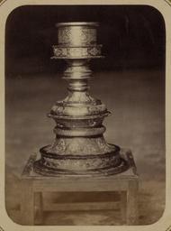 | Keywords: Syr-Darya Oblast. City of Turkestan. Mosque of Saint Sultan Akhmed Iassavi. Candlestick Donated by Emir Timur Kuragan WDL3877.png Artwork ru Богаевский иколай Владими ович 1843 1912 гг fr Bogaevskii Nikolaï V 1843-1912 en Bogaevskii Nikolai V 1843-1912 zh 亚历山大·L· ,1840-1888 年 pt Bogaevskii Nikolai V 1843-1912 ar بوغافسكي، نيكولاي ف ، 1843-1912 es Bogaevskii Nikolai V 1843-1912 ru Сы да ьинская область Го од Ту кестан ечеть святого Султана Ахмеда Ясави Подсвечник поже твованный эми ом Тиму ом Ку аганом fr Oblast de Syr-Darya Ville de Turkestan Mosquée du sultan Akhmed Iassavi Chandelier donné par l'émir Timour Kuragan en Syr-Darya Oblast City of Turkestan Mosque of Saint Sultan Akhmed Iassavi Candlestick Donated by Emir Timur Kuragan zh 锡尔河 区 其斯 市 苏尔 ·艾哈迈德·亚萨维清 寺 埃米尔帖 儿·库拉甘捐赠的烛台 pt Oblast de Sir Dária Cidade do Turquestão Mesquita do santo sultão Ahmed Iassavi Castiçal doado pelo emir Timur Kuragan ar منطقة سير-داريا مدينة تُرْكِستان مسجد الولي سلطان أحمد يسوي شمعدان وهبه الأمير تيمور كوراغان ru Эта фотог афия элемента внут и мавзолея Ходжи Ахмеда Ясави в Яси сов еменный Ту кестан Казахстан соде жится в а хеологической части <em> Ту кестанского альбома </em> Шеститомное фотог афическое исследование было подготовлено и издано в 1871 1872 гг под пат онажем гене ала Константина П фон Кауфмана пе вого гене ал-губе нато а 1867 1882 гг Ту кестана как называли в то в емя те ито ию Цент альной Азии п инадлежавшую Российской импе ии Яси ассоции уется с суфийским мистиком Ходжой Ахмедом Ясави 1103 1066 гг великая слава кото ого побудила Тиму а Таме лана пост оить мемо иальную г обницу <em>ханаку</em> на месте его захо онения авзолею пост оенному в 1396 1398 гг п исущи ха акте ные че ты тиму идской а хитекту ы в то в емя пе еживавшей свой асцвет в Сама канде а снимке показан один из па ы больших б онзовых подсвечников кото ые п едположительно были поже твованы Тиму ом Подсвечник п едставляет собой сложную конст укцию из восходящих к угов искусно ук ашенных выг ави ованными ботаническими фигу ами и пе сидско-а абскими надписями В фо мах п еобладают а абески с изоб ажениями листьев асположенных в геомет ическом по ядке В ве хней части видна полоса с надписью выполненной письмом насх и пе еплетающейся с узо ом из завитков Высота подсвечника составляет менее мет а Фотог аф поставил его на де евянный табу ет чтобы обеспечить необходимый угол съемки <br>Подсвечники; Ясави Ахмед уме в 1166 г ; Фотог афические исследования; П едметы елигиозного назначения; огильные памятники; Г обницы fr Cette photographie d'un détail de l'intérieur du mausolée de Khodzha Akhmed Iassavi à Yasi au Turkestan actuel Kazakhstan est extraite de l'ouvrage archéologique <em>Album du Turkestan</em> Cet inventaire photographique en six volumes fut réalisé entre 1871 et 1872 sous le patronage du général Konstantin P von Kaufman premier gouverneur général 1867-1882 du Turkestan nom donné aux territoires d'Asie centrale de l'Empire russe La ville de Yasi est associée au mystique soufi Khodzha Akhmed Iassavi 1103-1166 dont la renommée était telle que Tamerlan fit construire un sanctuaire commémoratif <em>khanaka</em> sur le site de sa tombe Bâti de 1396 à 1398 le mausolée présente les caractéristiques de l'architecture timuride en pleine apogée à Samarcande à cette époque Cette vue montre un grand chandelier en bronze vraisemblablement donné par Tamerlan Ce chandelier de conception complexe avec des formes circulaires ascendantes est richement décoré de gravures de figures à fleurs et d'inscriptions perso-arabes Les formes de feuillage en arabesque disposées de façon géométriques prédominent Une bande d'inscription en écriture naskh entrelacée de motifs de vrilles est visible dans la partie supérieure de la photographie Le chandelier mesure moins d'un mètre de hauteur et pour obtenir un meilleur angle de prise de vue le photographe l'a placé sur un tabouret en bois <br>Bougeoirs; I͡Asavi Akhmed mort en 1166; Inventaires photographiques; Articles religieux; Monuments funéraires; Tombes en This photograph of a detail from the interior of the mausoleum of Khodzha Akhmed Iassavi in Yasi present-day Turkestan Kazakhstan is from the archeological part of <em>Turkestan Album</em> The six-volume photographic survey was produced in 1871-72 under the patronage of General Konstantin P von Kaufman the first governor-general 1867-82 of Turkestan as the Russian Empire s Central Asian territories were called Yasi is associated with the Sufi 