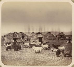 Keywords: Syr Darya Oblast. Kyrgyz Summer Camp near Chimkent WDL10984.png Artwork ru Кун Александ Людвигович 1840 1888 гг fr Kun Aleksandr L 1840-1888 en Kun Aleksandr L 1840-1888 zh 亚历山大·L· ,1840-1888 年 pt Kun Aleksandr L 1840-1888 ar كُن، ألكسندر ل ، 1840-1888 es Kun Aleksandr L 1840-1888 ru Сы да ьинская область Ки гизское летнее стойбище недалеко от Чимкента fr Oblast de Syr-Darya Campement d'été kirghize près de Chimkent en Syr Darya Oblast Kyrgyz Summer Camp near Chimkent zh 锡尔河州:奇姆肯特附近的吉尔吉斯夏令营 pt Oblast de Sir Dária Acampamento de verão quirquiz próximo a Shymkent ar منطقة سير داريا مخيم صيفي للقرغيز بجوار شيمكنت ru Эта фотог афия входит в этног афическую часть <em> Ту кестанского альбома </em><em></em>  всесто оннего исследования Цент альной Азии п едп инятого после того как в 1860-х годах в егионе установилось господство Российской импе ии Альбом созданный по аспо яжению гене ала Константина Пет овича фон Кауфмана 1818 1882 годы пе вого гене ал-губе нато а оссийского Ту кестана состоит из четы ех частей в шести томах «Часть а хеологическая» два тома «Часть этног афическая» два тома «Часть п омысловая» один том и «Часть исто ическая» один том Основным составителем альбома был оссийский востоковед Александ Людвигович Кун аботавший совместно с иколаем Венедиктовичем Богаевским В альбоме п едставлено около 1200 фотог афий а также а хитекту ные планы аква ельные исунки и ка ты «Часть этног афическая» включает в себя 491отдельную  фотог афию на 163 листах а фотог афиях изоб ажены п едставители азличных на одов егиона листы 1 33 повседневная жизнь и итуалы листы 34 91 а также виды де евень и го одов уличные то говцы и комме ческая деятельность листы 92 163 <br>Этног афические фотог афии; Козы; Ки гизский; Фотог афические исследования; Палатки fr Cette photographie est extraite de la partie ethnographique de l'<em>Album du Turkestan</em> étude visuelle complète de l'Asie centrale entreprise après que l'Empire russe prit le contrôle de la région dans les années 1860 Commandé par le général Konstantin Petrovich von Kaufman 1818 1882 premier gouverneur général du Turkestan russe l'album est composé de six volumes en quatre parties  la partie archéologique deux volumes la partie ethnologique deux volumes la partie sur les métiers un volume et la partie historique un volume L'album fut essentiellement compilé par l'orientaliste russe Aleksandr L  Kun assisté de Nikolai V  Bogaevskii Il comporte près de 1200 photographies et inclut également des plans architecturaux des dessins à l'aquarelle et des cartes La partie ethnographique compte 491 photographies sur 163 planches montrant des individus des différentes peuplades de la région planches 1 à 33 des scènes de la vie quotidienne et des rites planches 34 à 91 ainsi que des vues de villages et de villes de vendeurs ambulants et d'activités commerciales planches 92 à 163 <br>Photographies ethnographiques; Chèvres; Kirghizie; Inventaires photographiques; Tentes en This photograph is from the ethnographical part of <em>Turkestan Album</em><em> </em>a comprehensive visual survey of Central Asia undertaken after imperial Russia assumed control of the region in the 1860s Commissioned by General Konstantin Petrovich von Kaufman 1818 82 the first governor-general of Russian Turkestan the album is in four parts spanning six volumes Archaeological Part two volumes ; Ethnographic Part two volumes ; Trades Part one volume ; and Historical Part one volume The principal compiler was Russian Orientalist Aleksandr L Kun who was assisted by Nikolai V Bogaevskii The album contains some 1 200 photographs along with architectural plans watercolor drawings and maps The Ethnographic Part includes 491 individual photographs on 163 plates The photographs show individuals representing the different peoples of the region Plates 1 33 ; daily life and rituals Plates 34 91 ; and views of villages and cities street vendors and commercial activities Plates 92 163 <br>Ethnographic photographs; Goats; Kyrgyz; Photographic surveys; Tents zh 这张照片出自<em> 其斯 相册 </em><em> </em>的民族部分,该相册是俄罗斯 国 19 世纪 60 年代取得中亚控制 后, 手制 的 部针对该 区的综合 图像调查记录 相册由俄罗斯驻 其斯 (俄罗斯 国中亚属 的名称)首任 康斯 丁·彼得罗维奇·凡· 夫曼(Konstantin Petrovich von Kaufman,1818 82 年)将军赞助完成,共分六卷,四个部分: 古部分 (两卷); 民族部分 (两卷); 贸易部分 ( 卷)和 历史部分 ( 卷) 相册的主要编纂人是俄罗斯 方学 亚历山大·L· Aleksandr L Kun 亚历山大是 尼可莱·V·柏盖维斯基 Nikolai V Bogaevskii 的协助下完成相册的编纂 相册共含 1200 张照片,另 建筑平 图 水彩画和 图 民族部分 包括 491 张个人照,占 163 页 照片展现了该 区各个民族的人物形象(1-33 页) 日常