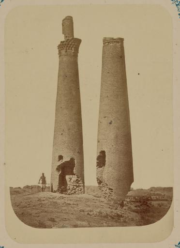 | Keywords: Syr-Darya Oblast. Ruins of the City of Sauran. Taken in 1866 WDL3601.png Artwork ru Богаевский иколай Владими ович 1843 1912 гг fr Bogaevskii Nikolaï V 1843-1912 en Bogaevskii Nikolai V 1843-1912 zh 亚历山大·L· ,1840-1888 年 pt Bogaevskii Nikolai V 1843-1912 ar بوغافسكي، نيكولاي ف ، 1843-1912 es Bogaevskii Nikolai V 1843-1912 ru Сы да ьинская область Развалины го ода Сау ана Снято в 1866 г fr Oblast de Syr-Darya Ruines de la ville de Sauran Photographie prise en 1866 en Syr-Darya Oblast Ruins of the City of Sauran Taken in 1866 zh 锡尔河 区 萨乌兰城遗 摄于 1866 年 pt Oblast de Sir Dária Ruínas da cidade de Sauran Fotografia tirada em 1866 ar منطقة سير داريا بقايا مدينة ساوران التقطت في عام 1866 ru Эта фотог афия азвалин го ода Сау ана асположенного в южной части сов еменного Казахстана соде жится в а хеологической части <em> Ту кестанского альбома </em> Шеститомное фотог афическое исследование было подготовлено и издано в 1871 1872 гг под пат онажем гене ала Константина П фон Кауфмана пе вого гене ал-губе нато а 1867 1882 гг Ту кестана как называли в то в емя те ито ию Цент альной Азии п инадлежавшую Российской импе ии В заголовке указано что фотог афия была сделана в 1866 г то есть анее чем фотог афии снятые специально для альбома Сау ан также известный как Сав ан находился на асстоянии около 40 километ ов от го ода Яси сов еменный Ту кестан Казахстан и считался важным пунктом на Великом шелковом пути В XIV веке он стал столицей местной Ак-О ды Белой О ды и в тот пе иод славился изготовлением ке амической плитки Ак означает белый и в т адиционных тю кских названиях основных сто он света соответствует югу ; д угими основными нап авлениями были Кок что означает синий или восток ; Кизил к асный или запад ; и Ка а че ный или севе Ки пичные мина еты на холмистой местности на фотог афии несут следы се ьезных пов еждений но они все еще стоят Похоже что особенно у п авой башни нет достаточного основания Внешняя стена башни фактически п едставляет собой оболочку внут и кото ой находится спи альная лестница но цент башни остается относительно непов ежденным У башни слева сох анилась надст ойка возвышающаяся над сталактитовой ве шиной основного сте жня Фигу а слева дает п едставление о масштабе башен <br>А хеологические объекты; Исламская а хитекту а; Фотог афические исследования; Руины fr Cette photographie des ruines de la ville de Sauran située dans le sud de l'actuel Kazakhstan est extraite de l'ouvrage archéologique <em>Album du Turkestan</em> Cet inventaire photographique en six volumes fut réalisé entre 1871 et 1872 sous le patronage du général Konstantin P von Kaufman premier gouverneur général 1867-1882 du Turkestan nom donné aux territoires d'Asie centrale de l'Empire russe La légende indique que la photographie fut prise en 1866 date antérieure à celle du projet de photographie entrepris spécifiquement pour cet album Située à 40 kilomètres environ de Yasi au Turkestan actuel Kazakhstan la ville de Sauran également appelée Savran était considérée comme une étape importante sur la route de la soie Au XIV<sup>e</sup> siècle alors qu'elle était connue pour sa production de carreaux de céramique elle devint la capitale de l'Ak Orda Horde blanche régionale Ak signifie « blanc » et dans la désignation traditionnelle turque des points cardinaux correspond au « sud » ; les autres points cardinaux sont Kok qui signifie « bleu » ou « est » Qizil « rouge » ou « ouest » et Qara « noir » ou « nord » Cette photographie montre deux minarets de briques qui malgré les dommages considérables sont encore dressés sur ce terrain vallonné La tour à droite en particulier ne semble pas reposer sur une base stable Le mur extérieur de la tour est en fait une paroi renfermant un escalier en colimaçon et le centre de la tour est resté relativement intact La tour de gauche possède encore sa superstructure visible au-dessus du sommet évasé décoré d'ornements en stalactites du corps principal La personne sur la gauche donne une idée des dimensions des tours <br>Sites archéologiques; Architecture islamique; Inventaires photographiques; Ruines en This photograph of ruins from the city of Sauran located in the southern part of present-day Kazakhstan is from the archeological part of <em>Turkestan Album</em> The six-volume photographic survey was produced in 1871-72 under the patronage of General Konstantin P von Kaufman the first governor-general 1867-82 of Turkestan as the Russian Empire s Central Asian territories were called The caption no