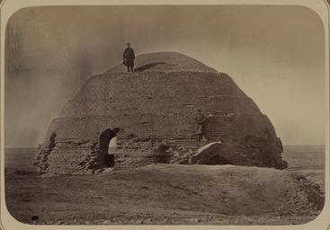 | Keywords: Syr-Darya Oblast. Ruins of the Mulushki Mirza Rabat in the Hungry Steppe WDL3890.png Artwork ru Богаевский иколай Владими ович 1843 1912 гг fr Bogaevskii Nikolaï V 1843-1912 en Bogaevskii Nikolai V 1843-1912 zh 亚历山大·L· ,1840-1888 年 pt Bogaevskii Nikolai V 1843-1912 ar بوغافسكي، نيكولاي ف ، 1843-1912 es Bogaevskii Nikolai V 1843-1912 ru Сы да ьинская область Развалины абата улушки-ми зы в Голодной степи fr Oblast de Syr-Daria Ruines du rabat de Mulushki Murza dans la steppe de la Faim en Syr-Darya Oblast Ruins of the Mulushki Mirza Rabat in the Hungry Steppe zh 锡尔河 区 位于饥饿草原的穆路 基·米尔扎拉巴特遗 pt Oblast de Sir Dária Ruínas do rabat de Mulushki Mirza na Estepe da Fome ar منطقة سير-داريا أطلال رَباط مولوشكي ميرزا بالسهب الجائع ru Эта фотог афия азвалин <em> абата</em> улушки-му зы в Голодной степи соде жится в а хеологической части <em> Ту кестанского альбома </em> Шеститомное фотог афическое исследование было подготовлено и издано в 1871 1872 гг под пат онажем гене ала Константина П фон Кауфмана пе вого гене ал-губе нато а 1867 1882 гг Ту кестана как называли в то в емя те ито ию Цент альной Азии п инадлежавшую Российской импе ии Голодная степь асположенная главным об азом на те ито ии сов еменного Узбекистана и отчасти на те ито ии сов еменного Таджикистана п едставляет собой полупустынную т авянистую авнину п отянувшуюся к юго-востоку от пустыни Кызылкум в нап авлении еки Сы да ьи После завоевания этого егиона Российской импе ией конец 1860-х гг плодо одность местных лессовых земель идеально подходящих для вы ащивания хлопка послужила п ичиной еализации масштабных и игационных п оектов часть из кото ых спустя со ок лет была запечатлена на фотог афиях Се гея П окудина-Го ского Слово абат или <em> ибат </em> имеет несколько толкований кото ые в целом сводятся к обозначению ук епленной заставы Только цент альная часть под куполом сох анилась от д евнего абата показанного на фотог афии Даже в полу аз ушенном состоянии купол впечатляет высоким качеством кладки п и кото ой ки пичи слегка сдвигаются внут ь для об азования свода консольная кладка Особого внимания заслуживает то как яды ки пичей по ме е подъема купола об азуют ши окие пояса аналогичная техника использовалась п и соо ужении абата улушки-му зы близ Худжанда Точное местонахождение памятника неизвестно однако можно п едположить что он асполагался к севе о-востоку от Джизака по до оге в Ташкент входившей в систему до ог Великого шелкового пути Два человека на фотог афии одеты в шинели кото ые носили служащие оссийской а мии <br>А хеологические объекты; Фотог афические исследования fr Cette photographie des ruines du <em>rabat</em> de Mulushki Murza sur la steppe de Golodnaia ou de la Faim est extraite de l ouvrage archéologique <em>Album du Turkestan</em> Cet inventaire photographique en six volumes fut réalisé entre 1871 et 1872 sous le patronage du général Konstantin P von Kaufman premier gouverneur général 1867-1882 du Turkestan nom donné aux territoires d'Asie centrale de l'Empire russe La steppe de Golodnaia située principalement dans l actuel Ouzbékistan et sur une partie de l actuel Tadjikistan est une plaine herbeuse semi-aride qui s étend au sud-est depuis le désert du Kyzylkoum jusqu au fleuve de Syr-Daria Après la conquête russe de la région à la fin des années 1860 la qualité fertile du sol de lœss idéal pour la culture du coton a donné lieu à de grands projets d irrigation dont certains ont été photographiés par Sergei Prokudin-Gorskii quatre décennies plus tard Le mot « rabat » ou <em>ribat</em> a différentes interprétations qui indiquent généralement un avant-poste fortifié De l ancien rabat illustré ici seule la structure centrale en forme de dôme subsiste Même si le dôme est en ruine il se distingue par la qualité de sa maçonnerie qui se compose de briques inclinées légèrement vers l intérieur ou en encorbellement pour créer le dôme La manière dont les rangées de briques forment de larges bandes sur la pente du dôme est particulièrement remarquable Une technique similaire est visible sur le rabat de Mulushki Murza à proximité de Khodjend L emplacement exact du monument n est pas connu mais il est possible qu il soit au nord-est de Djizak sur la route de Tachkent qui fait partie du réseau de la route de la s
