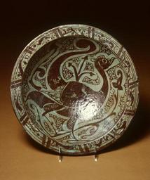 | Keywords: Syrian - Lusterware Bowl with Peacock - Walters 481231.jpg In Arab countries and Muslim realms in the Mediterranean region artistic innovation flourished in the 9th-14th centuries Lusterware was among the most original development of Arab potters who mixed silver sulfides and copper oxides to create a shiny metallic sheen on the surface of glazed earthenware bowls plates and other utilitarian vessels This lusterware bowl with underglaze black is decorated with a peacock against a scrollwork background 12th-early 13th century Medieval fritware with luster decoration cm 10 35 h x diam accession number 48 1231 26314 Dikran Kelekian Paris and New York Henry Walters city Baltimore Walters Art Museum Henry Walters Acquired by Henry Walters 1927 place of origin Rusafah Syria Walters Art Museum license Islamic art in the Walters Art Museum Ceramics from Syria Media contributed by the Walters Art Museum needs category review Peacocks in Islamic art |