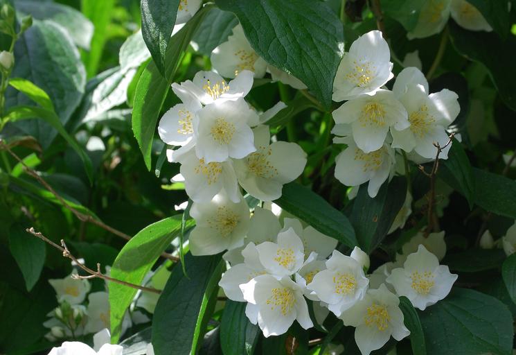 Keywords: syringa vulgaris mock orange flower shrub close-up perfume white