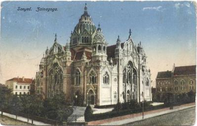 Keywords: Szeged Hongrie.jpg New synagogue of Szeged in Hungary Post-card of 1913 Old Postcard 1913 author PD-old New Synagogue Szeged Szeged in art Postcards of Hungary before 1918