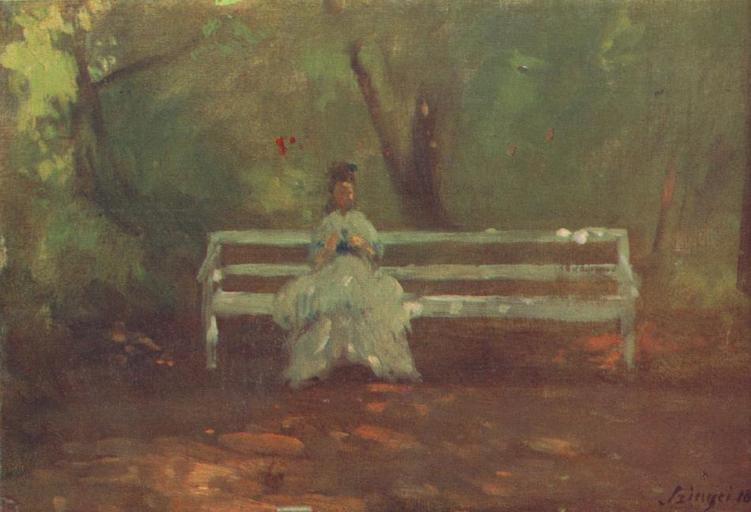 | Keywords: Szinyei Merse, Pál - On a Garden Bench (Sketch, 1873).jpg Artwork Creator Pál Szinyei Merse LangSwitch sketch vázlat 1873 Oil on canvas Size cm 33 20 4 Institution Hungarian National Gallery object history credit line accession number 6252 Fine Arts in Hungary http //www hung-art hu/kep/s/szinyei/muvek/1870-79/padon jpg http //www hung-art hu/frames html /magyar/s/szinyei/muvek/1870-79/padon html PD-old-auto 1920 Paintings by Pál Szinyei Merse in the Hungarian National Gallery 1873 paintings in Hungary Sitting people Studies art Files by User Jedudedek Pd-Art upload People on benches |