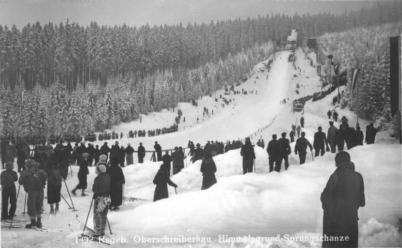 | Keywords: Szklarska Poreba Ski Jump Old 01.jpg Szklarska Poreba ski jump Germany now Poland <br> Oberschreiberhau Himmelsgrun-Sprungschanze<br> Skocznia narciarska Szklarska Poręba Polska Old postcard Photowerkstätte Bruno Scholz Görlitz Schles Bismarckstr 10; from my personal collection date early 20th century Jojo en Jojo_1 pl Jojo PD-Old PD-old Szklarska Poręba Ski jumping hills in Poland Postcards of sports | ||||
