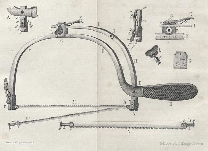 Keywords: Szymanowski saw.jpg ru езекционная пила усского хи у га Юлия Шимановского 1829-1868 а хив А А а кевича Ю К Шимановский 1829-1868 1856 Historical surgical instruments PD-old