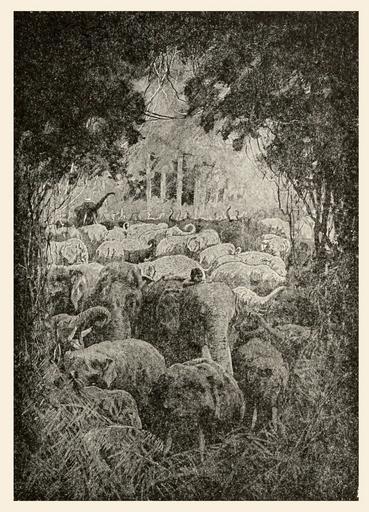 Keywords: T2JB535 - Little Toomai looked down upon scores and scores of broad backs.jpg Little Toomai looked down upon scores and scores of broad backs The 1895 edition of The Two Jungle Books by Rudyard Kipling a compilation of The Jungle Book and The Second Jungle Book downloaded from http //www archive org/details/twojunglebooks00kipl 1895 W H Drake or John Lockwood Kipling PD-Old Other versions Cropped it image John Lockwood Kipling Engravings of elephants Toomai of the Elephants |