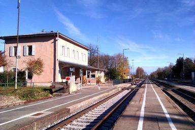 Keywords: türkheim germany station depot train railroad railway sky clouds building architecture fall autumn outside platform